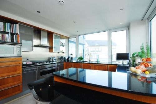 Nhà bếp hiện đại và phong cách. Nó có những bức tường trắng và mặt bàn màu tối tương phản. Nó cũng có gạch màu đen. Trong quá trình cải tạo vào năm 2008, nó cũng có các thiết bị mới, cộng với một máy giặt mới vào năm 2009. Căn hộ có chức năng và có nhiều không gian lưu trữ. Phòng ngủ chính có giường đôi với tủ đầu giường, năm tủ quần áo và khu vực làm việc nhỏ với bàn làm việc và kệ. Phòng ngủ còn lại có thể dễ dàng biến thành phòng làm việc của phòng trẻ em.