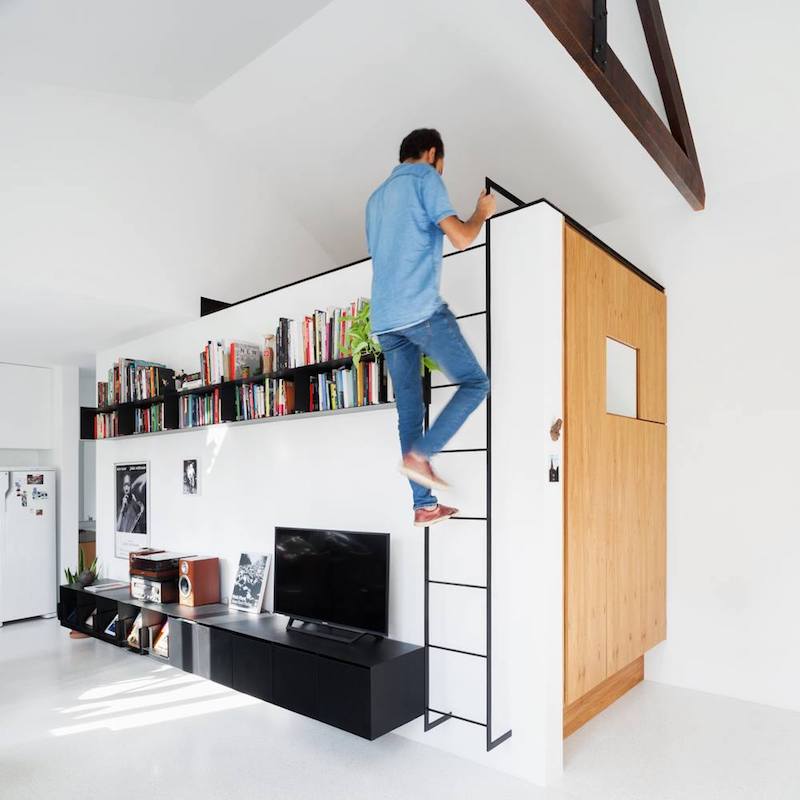 Một chiếc thang kim loại cho phép bạn tiếp cận một không gian bí mật nằm dưới trần nhà.