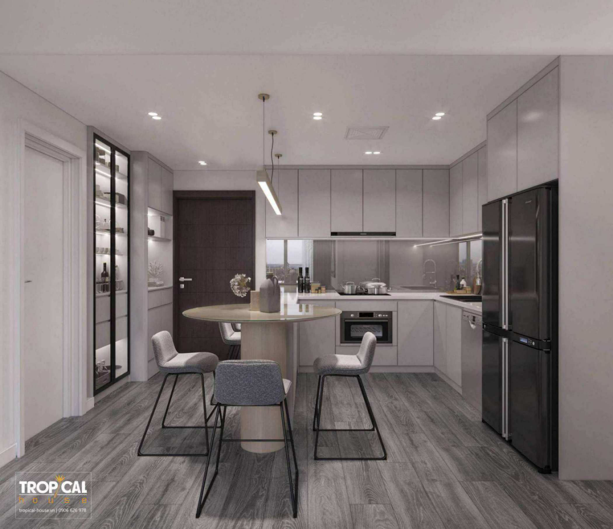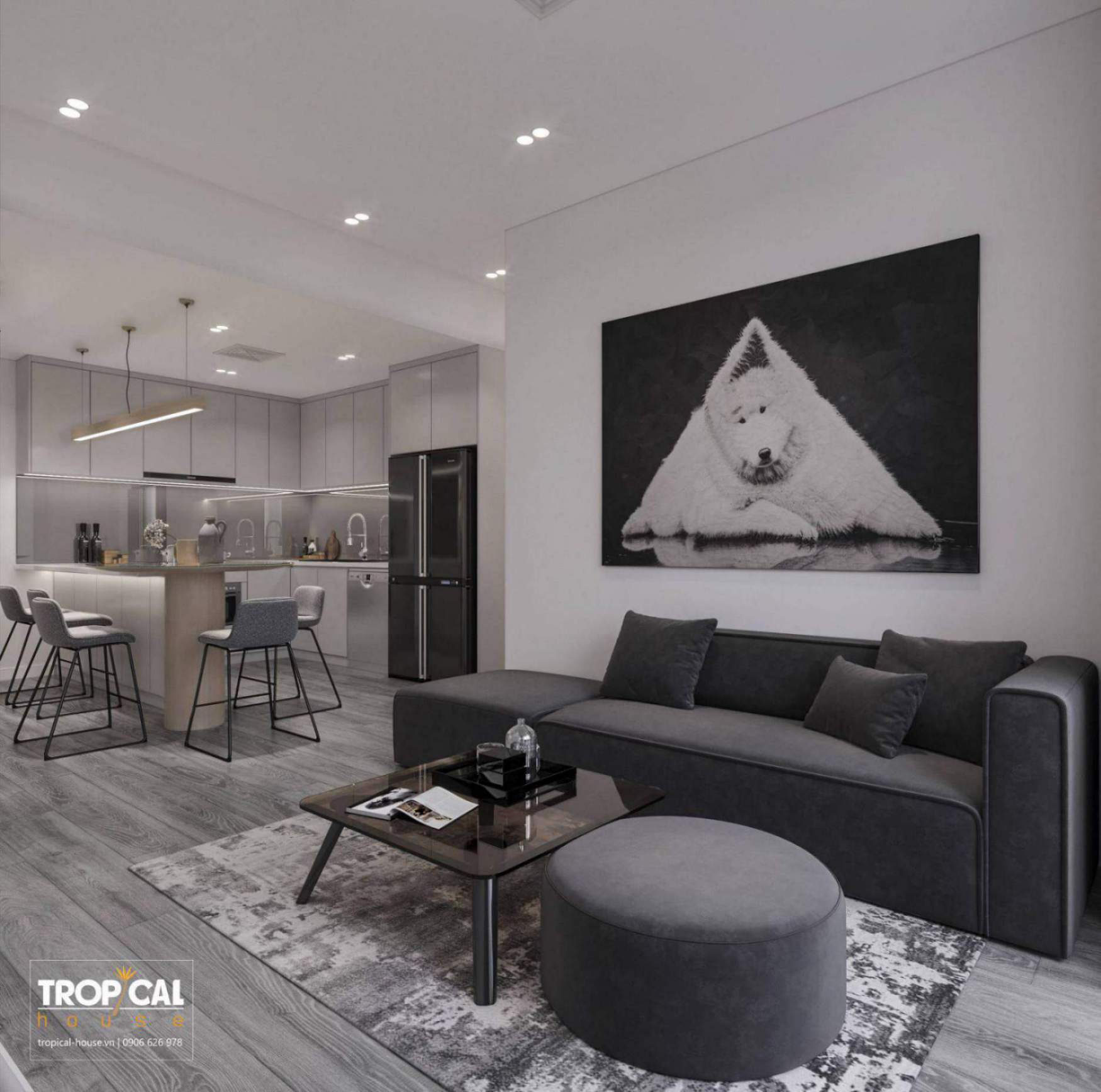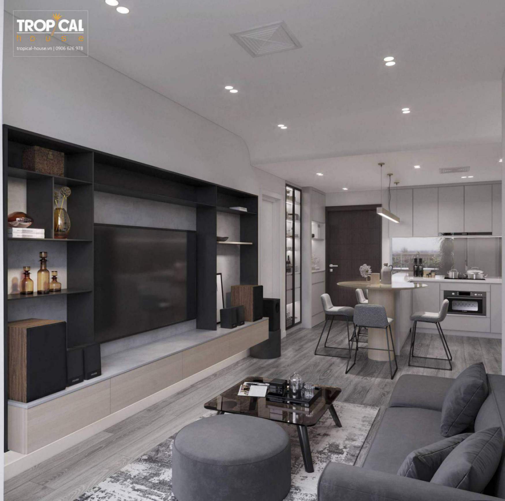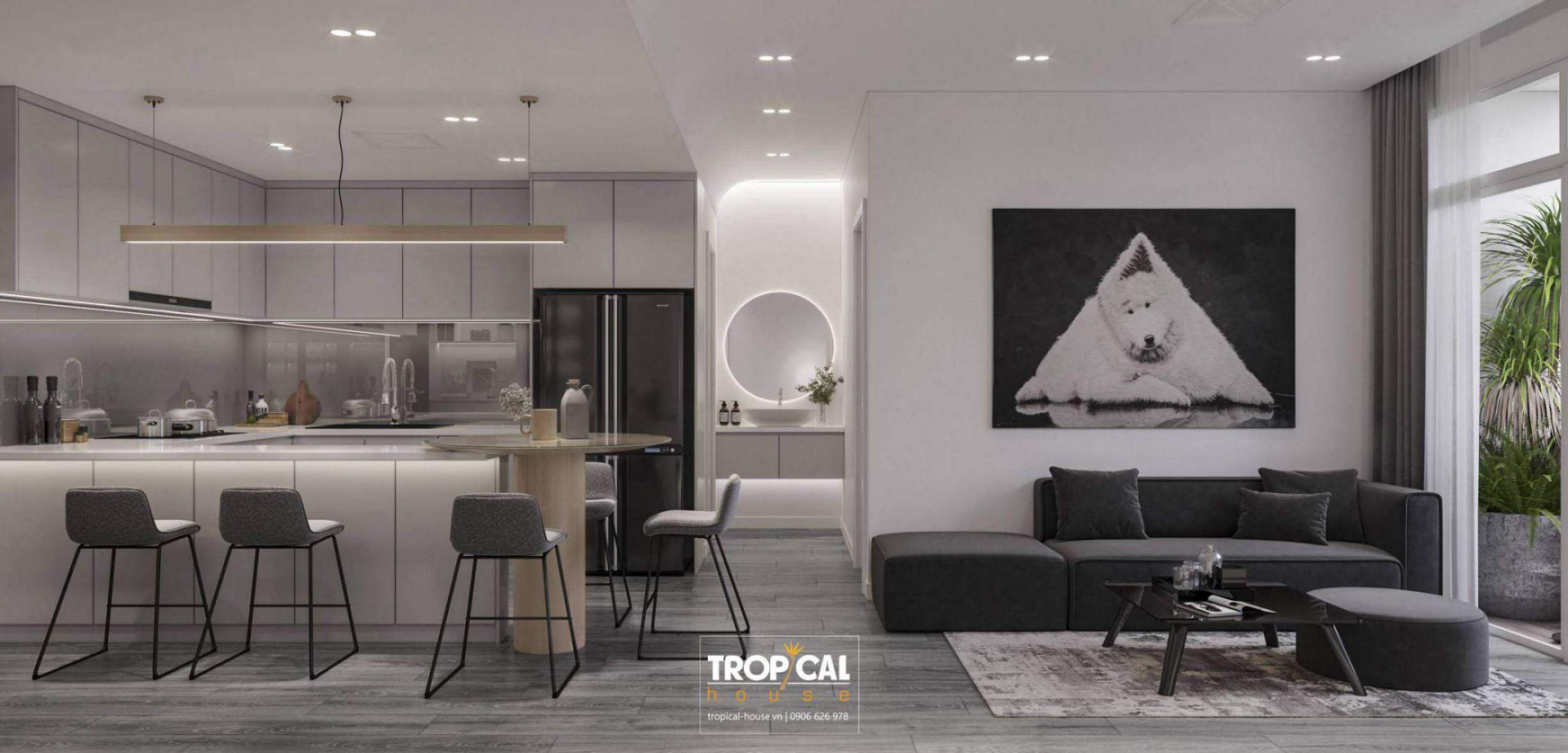 Căn chung cư được thiết kế theo phong cách minimalism kết hợp với hiện đại. Phong cách này hướng đến sự cân đối, hài hòa. Những chi tiết rườm rà được lượt bớt và đơn giản hóa không gian với nội thất tích hợp công năng làm cho không gian trở nên rộng rãi và gọn gàng hơn.
