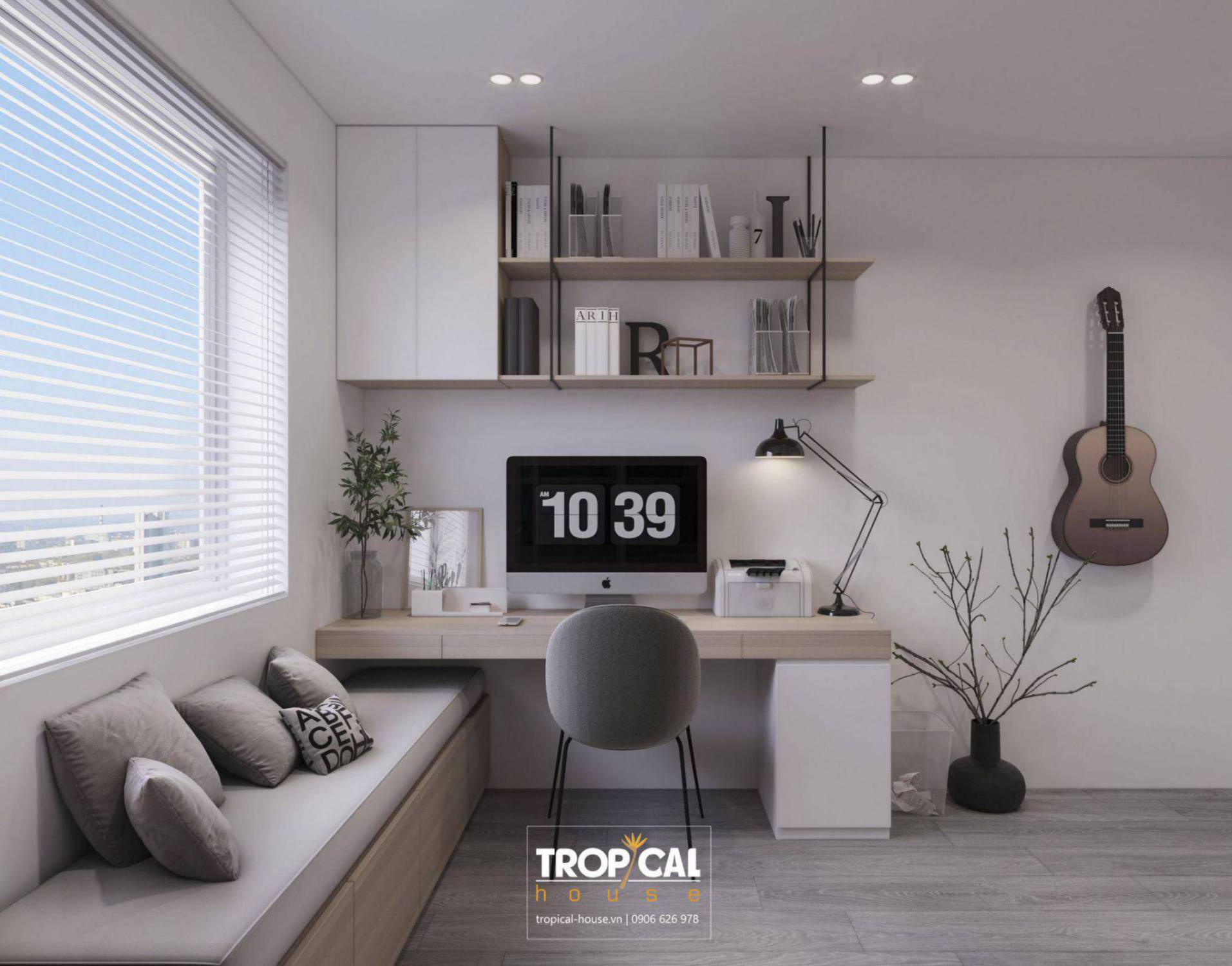 Tone màu chủ đạo trắng, xám sang trọng kết hợp nội thất màu kem làm điểm nhấn tạo không gian tinh tế, thanh lịch và gợi niềm cảm hứng bất tận cho những ý tưởng trong công việc.