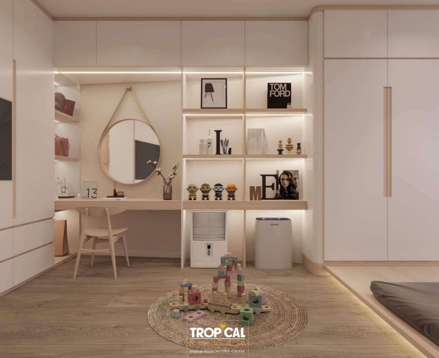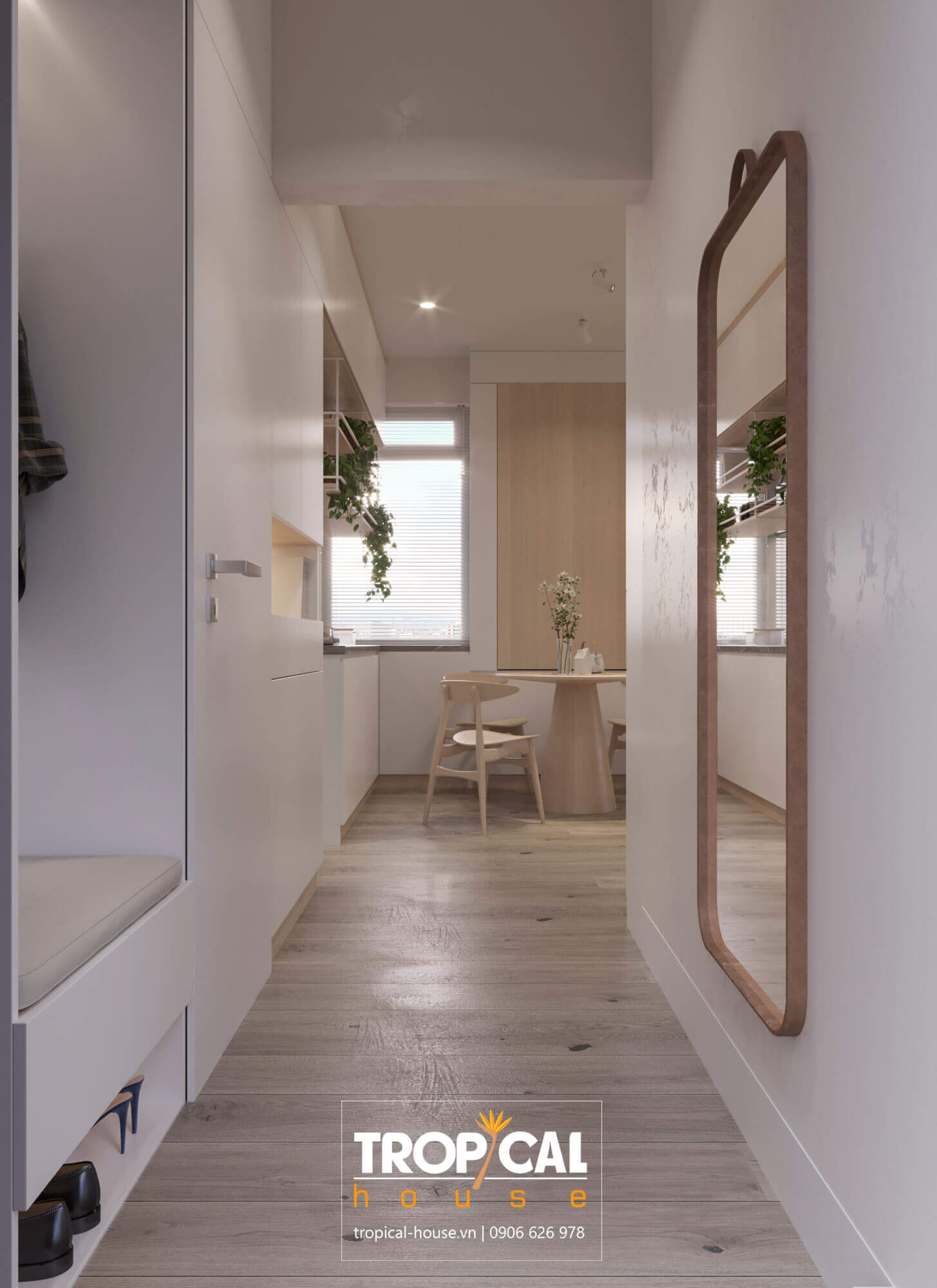 Thiết kế nội thất căn hộ SAIGON PEARL với nhu cầu sử dụng nhiều tủ, kho chứa đồ mà vẫn muốn gọn gàng thân thiện.Tropical House đã khéo léo kết hợp phong cách tối giản với bắc âu để đưa vào căn hộ với tiêu chí đa năng, tiện dụng mà vẫn gọn gàng tinh tế không rối mắt, hoàn thiện căn hộ từ trần, tường, đèn, các loại tủ, giường ... đều nhẹ nhàng khộng bị ngợp mà vẫn giữ được màu tự nhiien trong căn hộ.