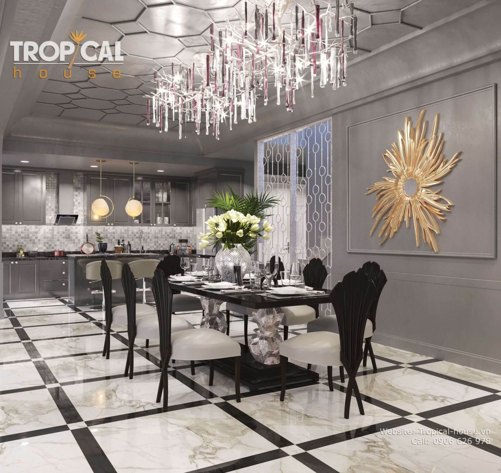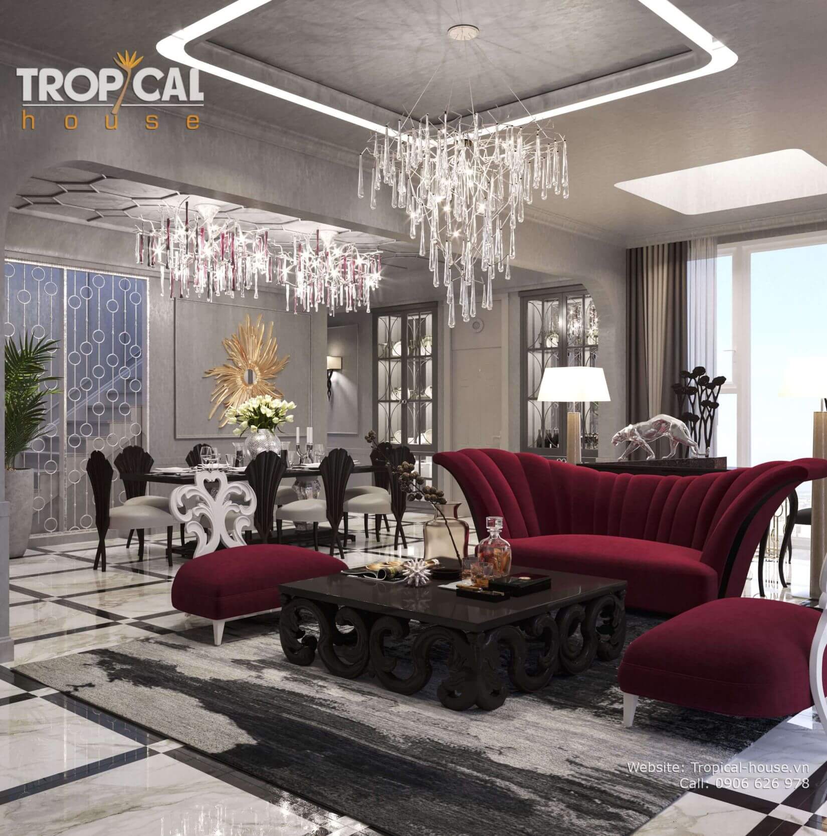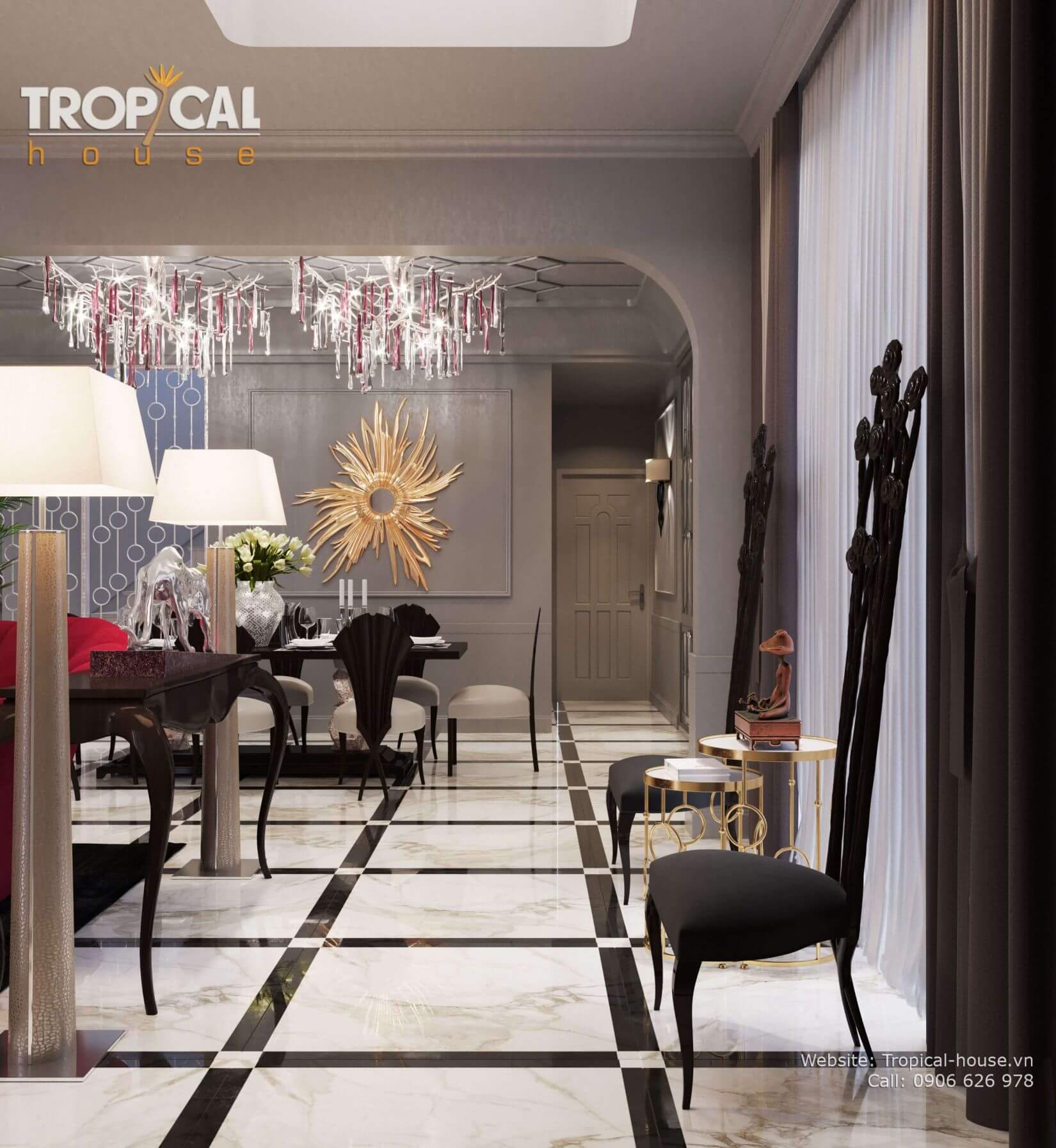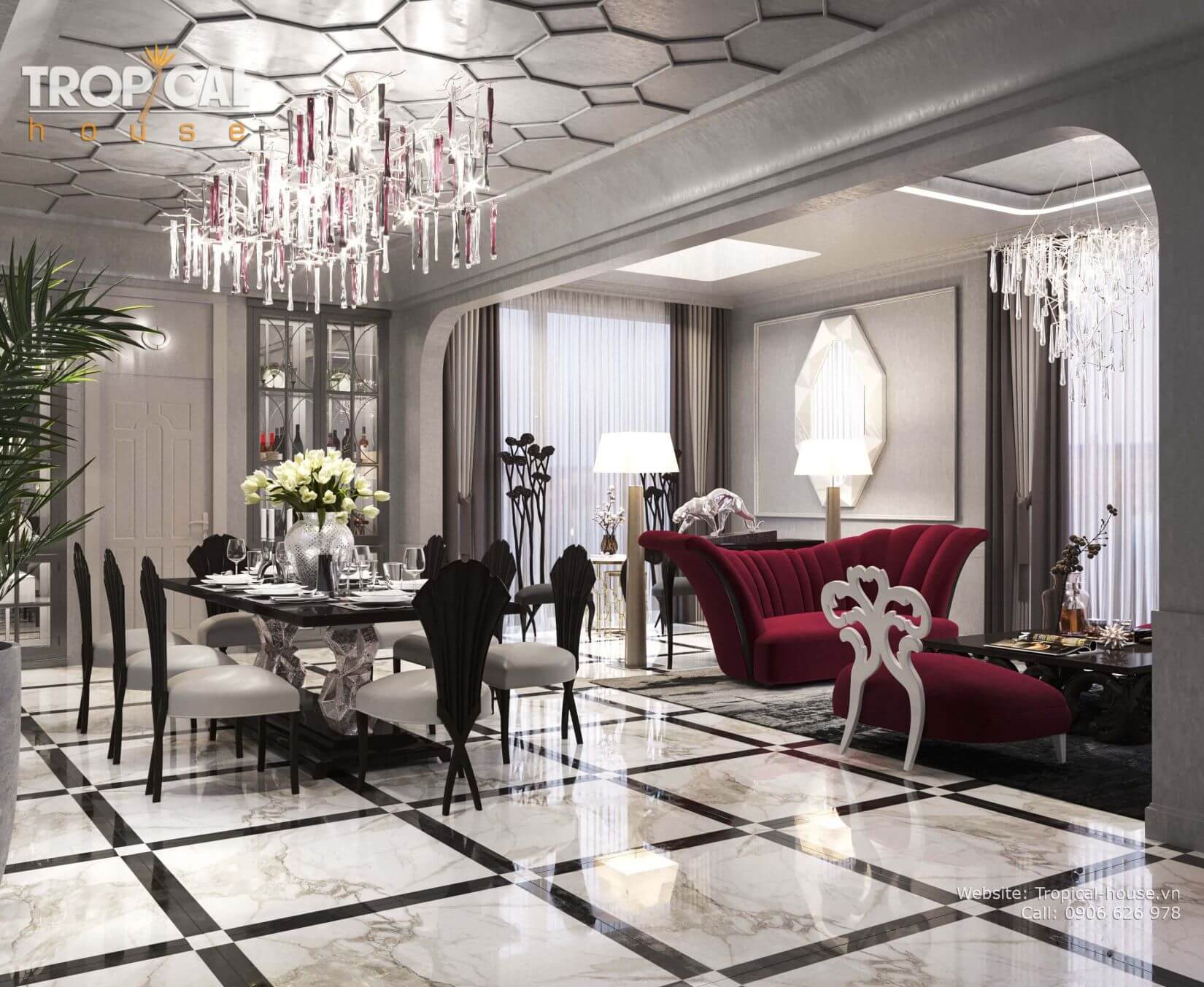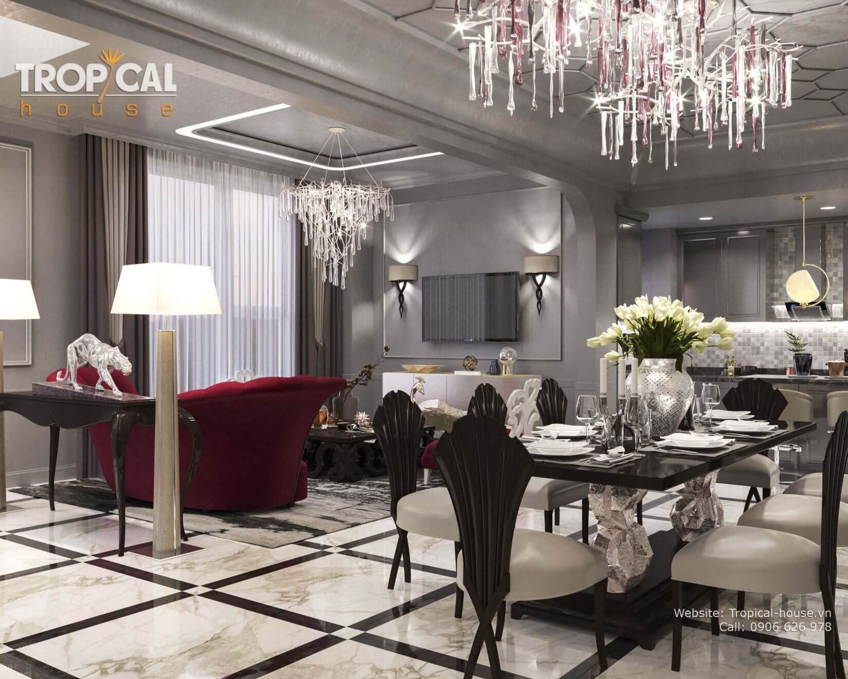 Chuẩn mực sang trọng và xa xỉ nhưng không kém phần thanh lịch và tao nhã là những gì Tropical House đã mang đến cho không gian sống của căn hộ này. Cuộc sống sẽ hoàn hảo hơn và gia chủ sẽ có những trải nghiệm sống cao cấp và tuyệt vời hơn đó chính là những gì mà Tropical House mong muốn đen lại cho tất cả các tổ ấm.