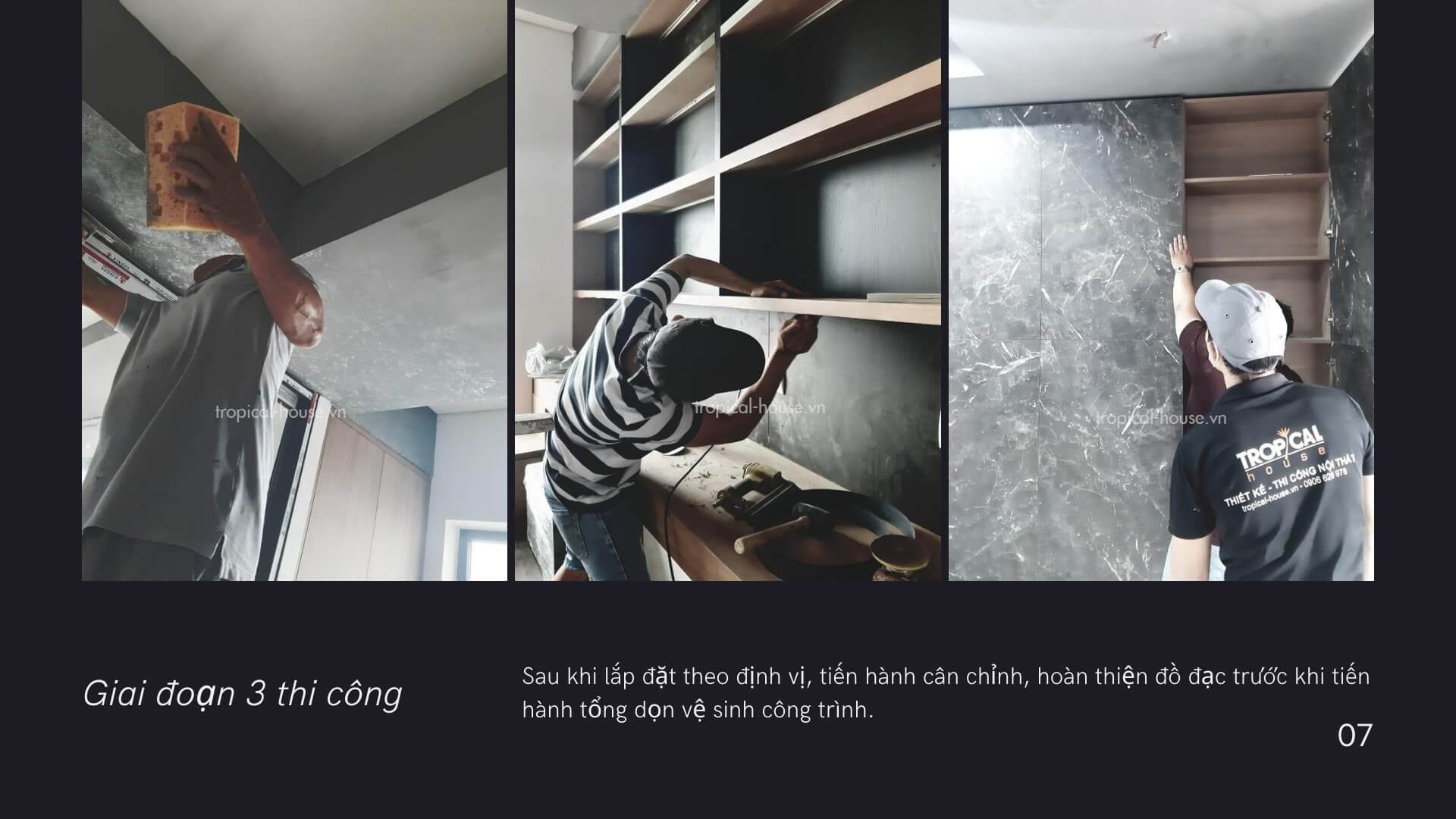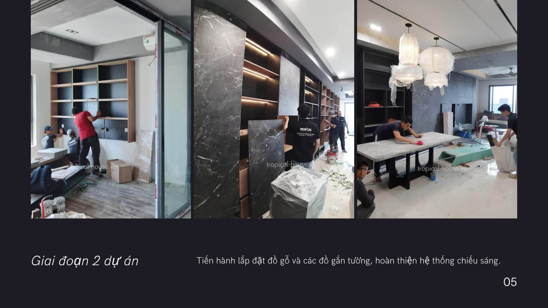 Tiến hành lắp đặt đồ gỗ và các đồ gắn tường, hoàn thiện hệ thống chiếu sáng.
