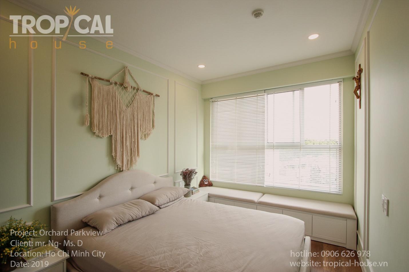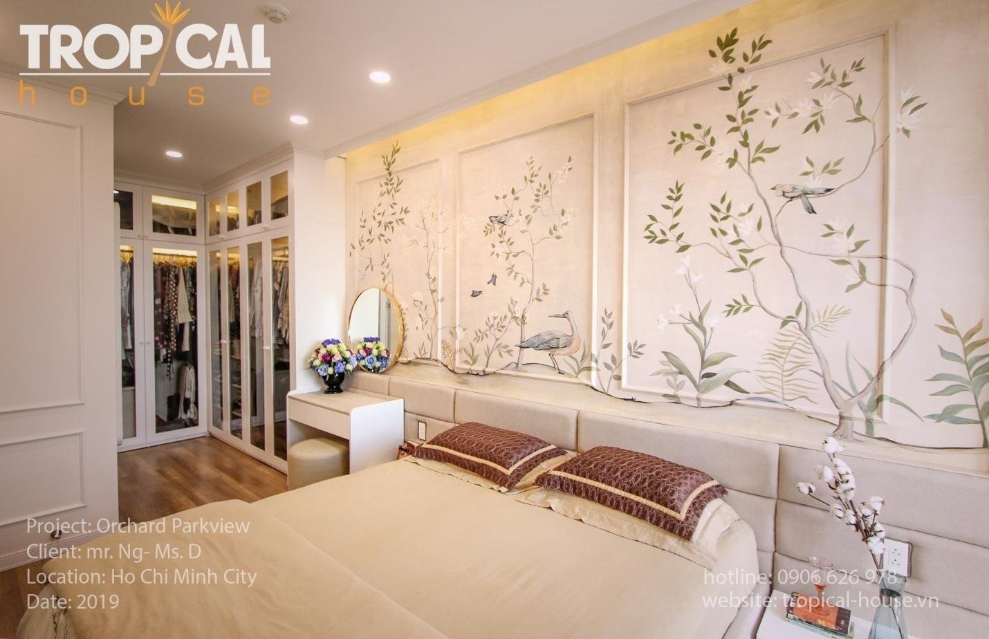 Theo yêu cầu của vợ chồng chị Dung, Tropical đã nhận thiết kế căn hộ cao cấp Orchard Parkview- Novaland, HCM với 3 phòng ngủ, xây thô. Nhiệm vụ của chúng tôi là biến căn hộ này thành 2 phòng ngủ với sự kết hợp 2 không gian thờ của đạo Thiên Chúa và đạo Phật vào trong cùng một không gian sống.