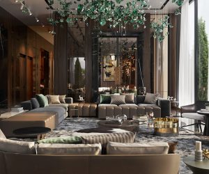 Các bộ sofa và ghế được bọc bằng chất liệu da tự nhiên cao cấp, với các đường may tỉ mỉ và các chi tiết kim loại bóng bẩy, tạo nên vẻ đẹp sang trọng và đẳng cấp. Các điểm nhấn nghệ thuật như các bức tranh trừu tượng hoặc các tác phẩm điêu khắc hiện đại được đặt ở các vị trí trung tâm, tôn lên vẻ đẹp của không gian.